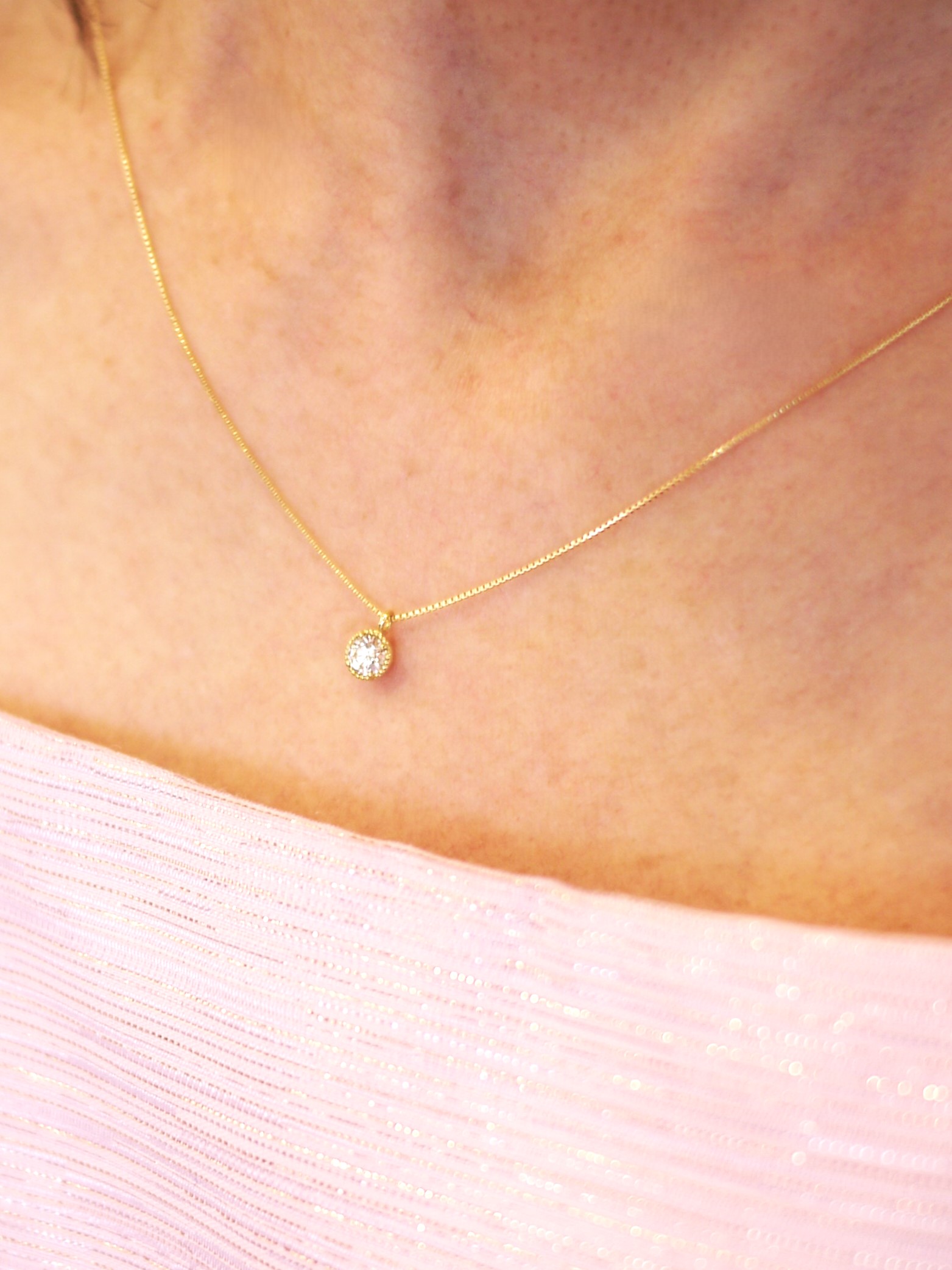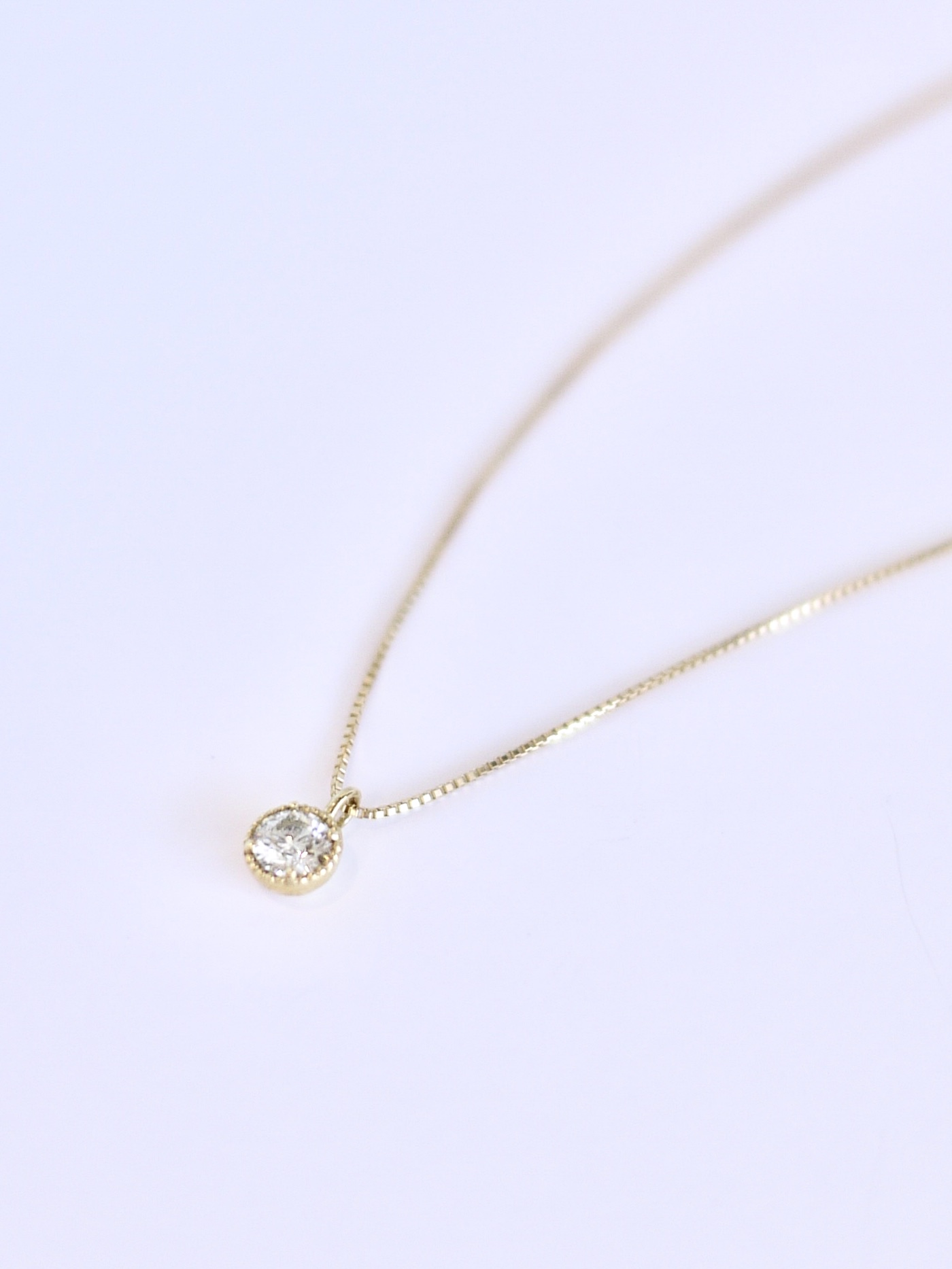 はじめてのジュエリーとしても、ずっと使える定番としても、まずは1本持っておきたい、1粒ダイヤのネックレス。繊細なミル打ち模様は優しい印象でとても人気です。自分へのご褒美にも、大切な人へのプレゼントにもぴったりなアイテム。