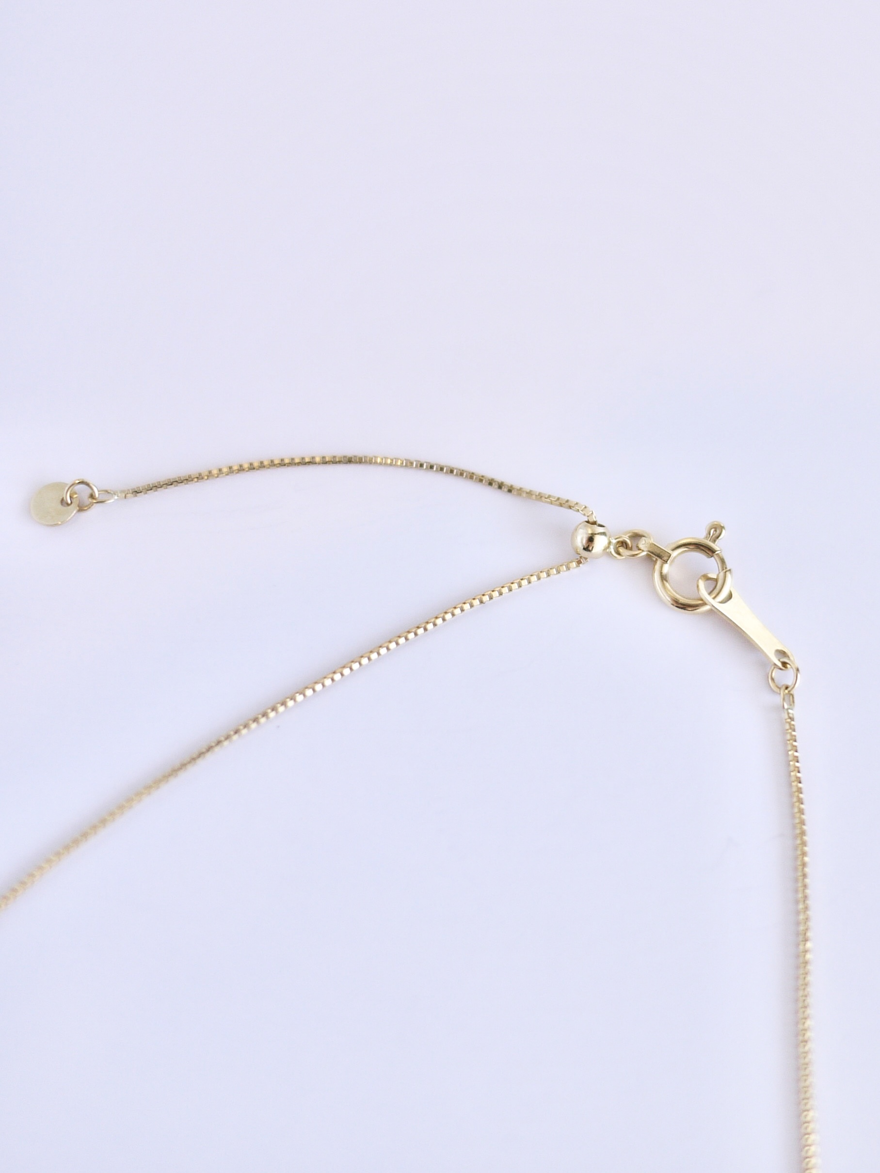 シンプルだからこそ、上質さが際立ちます。細身のゴールドチェーンが様々な装いに寄り添い、ファッションを格上げしてくれます。スライド式なので、お好みの長さで着用が可能です。