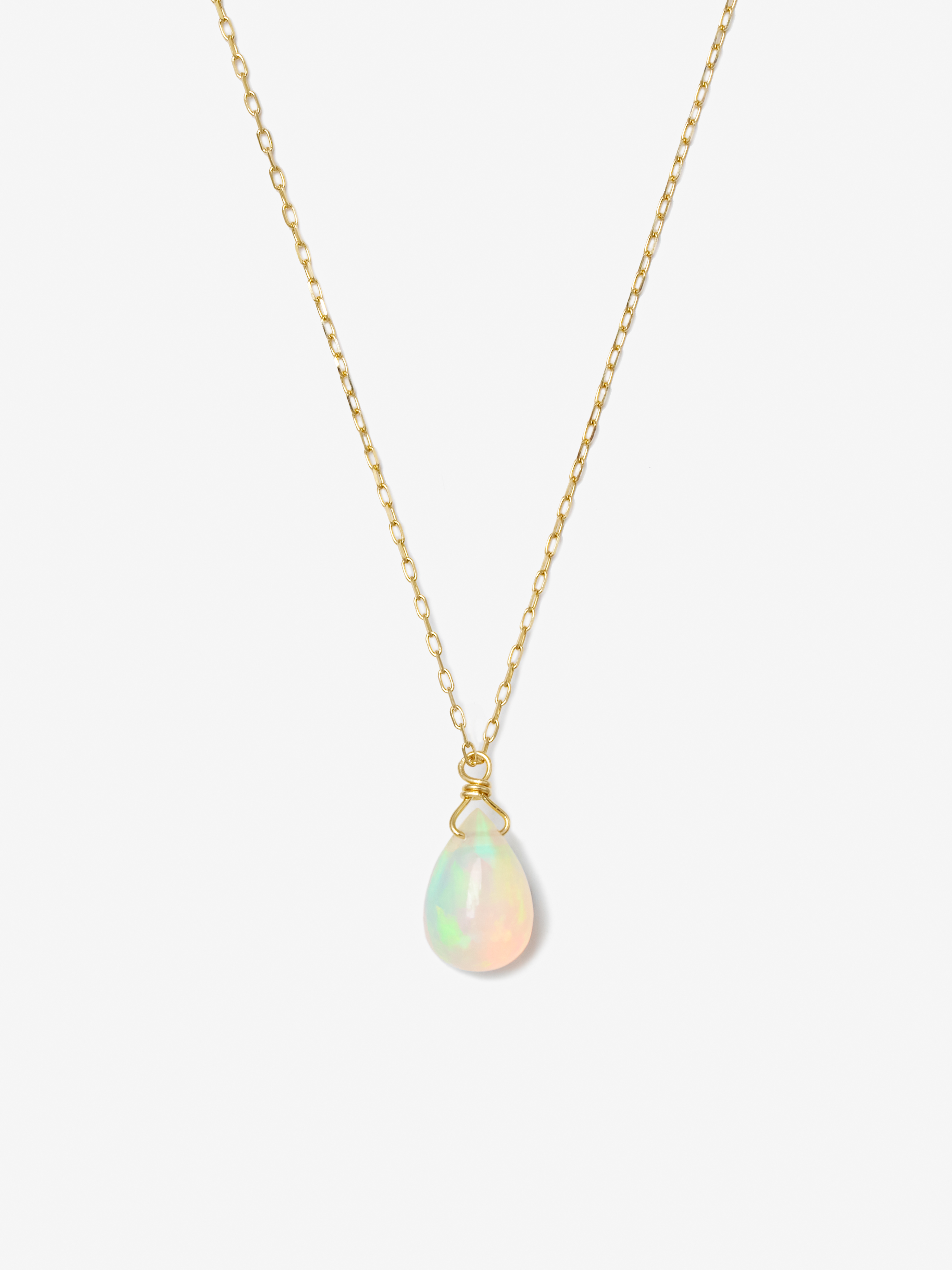 トップのオパールが際立つように、細いゴールドチェーンで仕立てております。1本でももちろん素敵ですが、地金の華奢なゴールドネックレスなどを重ね付けしても、軽やかでラフなお洒落をお楽しみいただけます。